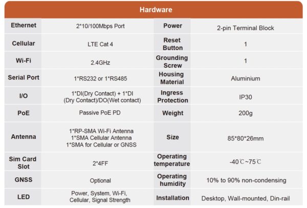 WR143 ได้รับการออกแบบอย่างเชี่ยวชาญสำหรับอุตสาหกรรม M2M และ IoT ด้วยรูปทรงที่กะทัดรัด พอร์ตอีเทอร์เน็ตสองพอร์ต พอร์ตซีเรียล และพอร์ต I/O WR143 ช่วยให้มั่นใจได้ว่าอุปกรณ์ของคุณยังคงเชื่อมต่อและตอบสนองฉับไว