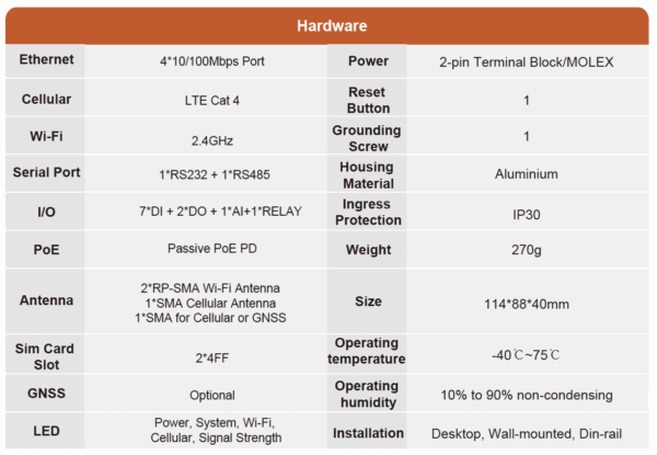• รองรับ Passive PoE-PD บนพอร์ต ETH 1 พอร์ต